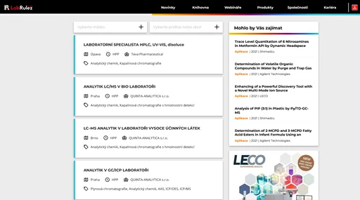 V srpnu v sekci Kariéra naleznete 38 aktivních nabídek práce z oblasti analytické chemie a především chromatografie (HPLC, GC) a hmotnostní spektrometrie (MS). Vše na jednom místě a s možností filtrace.