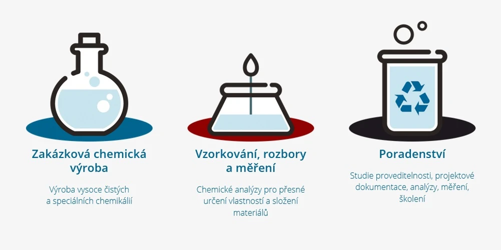 • Rozbory a analýzy vysoce čistých anorganických chemikálií (stanovení obsahu základní látky nebo vody stanovení kovových i nekovových nečistot (klasické analytické metody + výhledově ICP/MS).