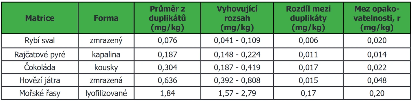 Níže uvedená data potvrzují, že laboratoř je schopna provozovat tuto metodu správně.