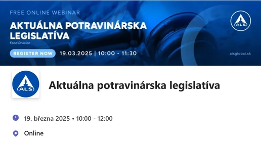 Bezplatný webinář na téma Aktuálna potravinárska legislatíva zahrnující nové právne predpisy Európskej únie, nové právne predpisy Slovenskej republiky a další.